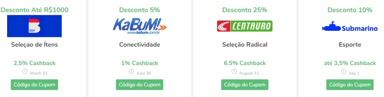 Mais de 350 lojas virtuais com cashback de até 10%, além das promoções diárias e cupons de descontos de até 80%.